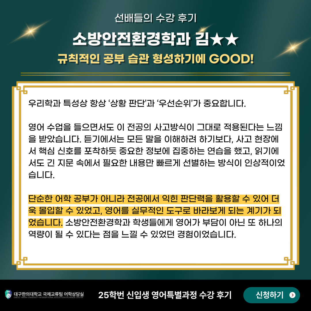25학번 소방안전환경학과 김OO 수강생
