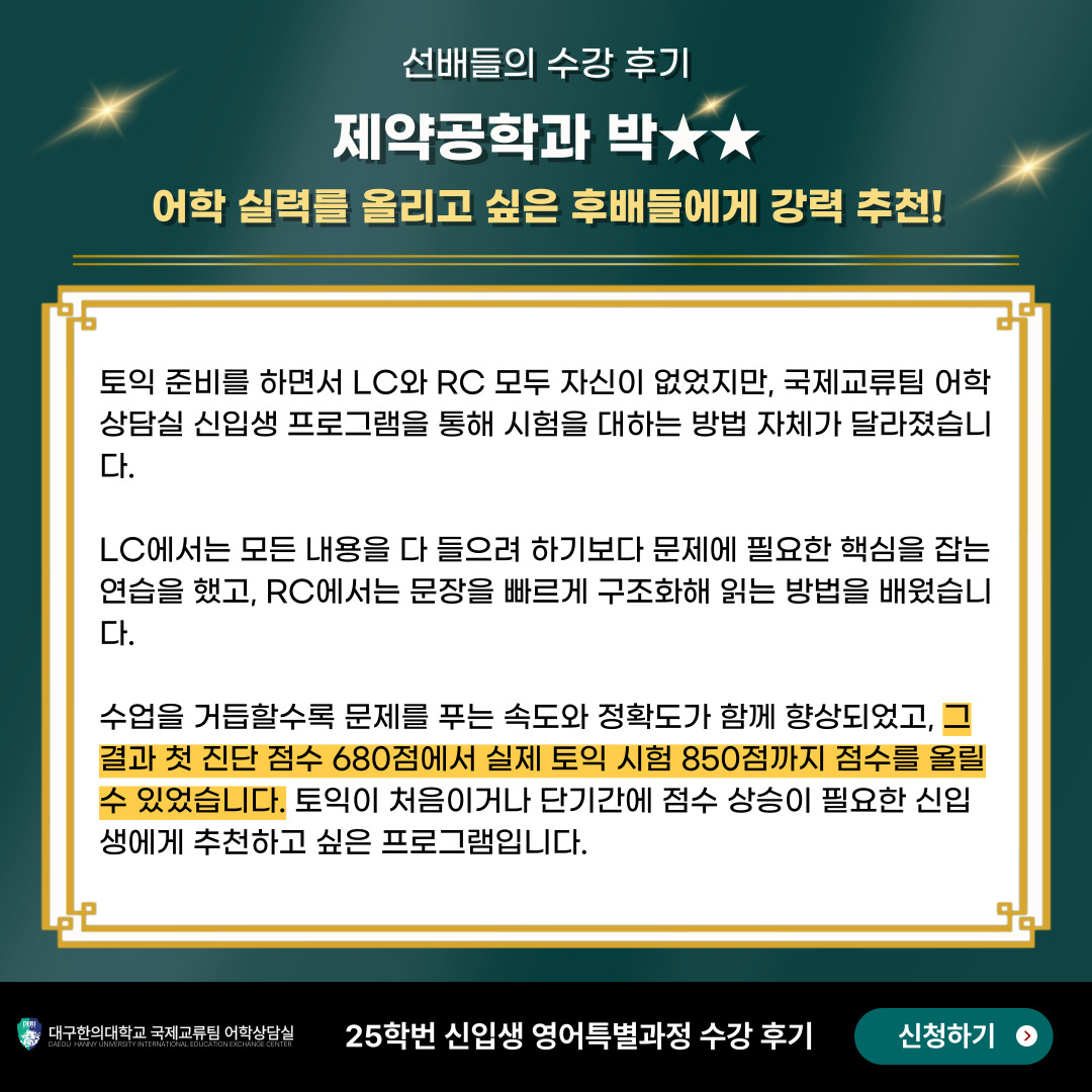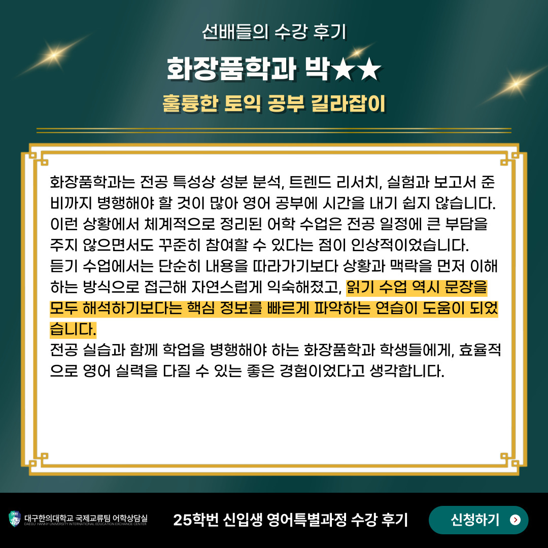 25학번 화장품학과 박OO 수강생