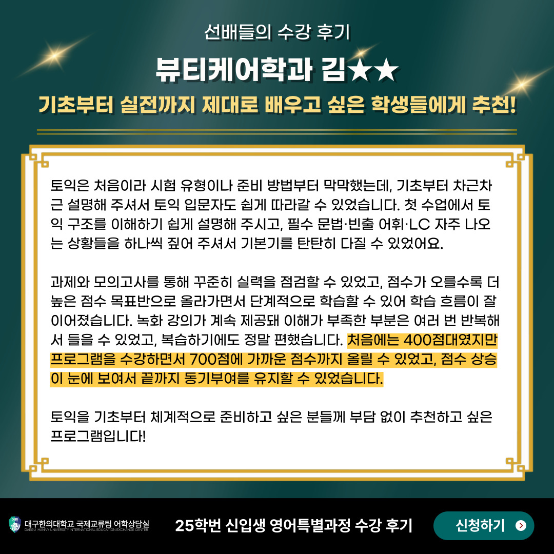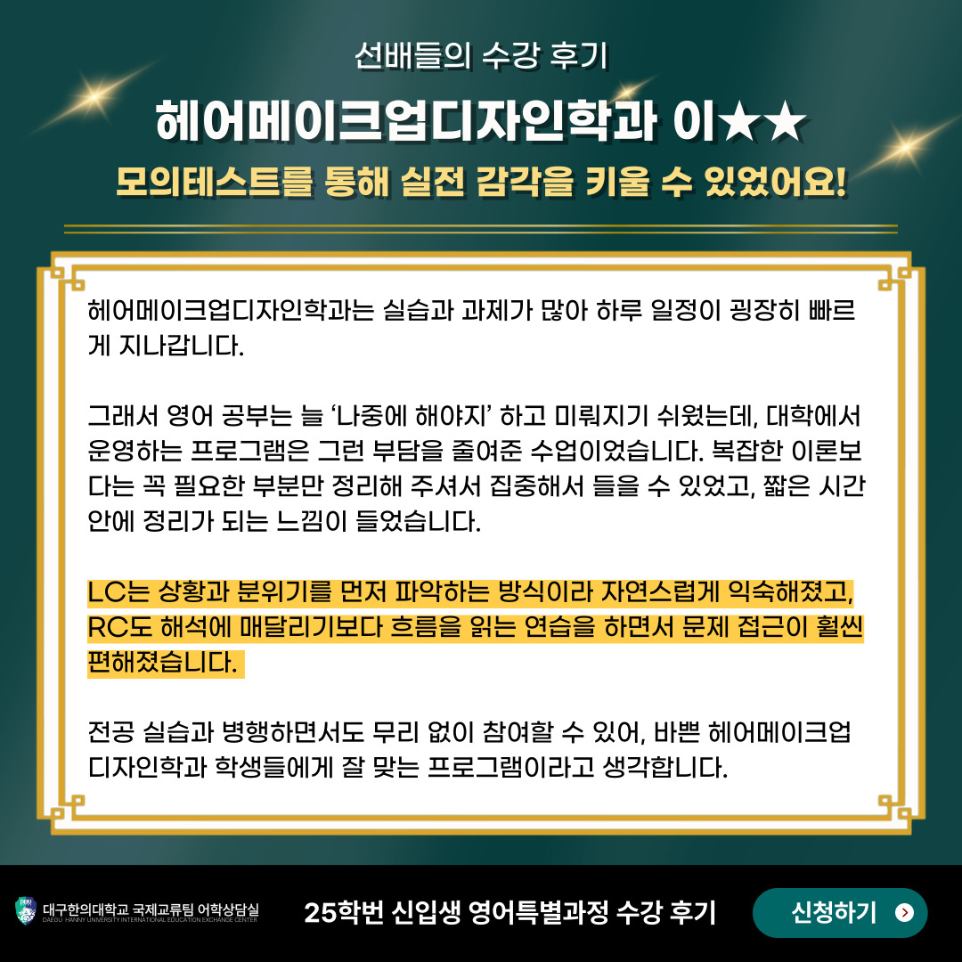 25학번 뷰티케어학과 김OO 수강생