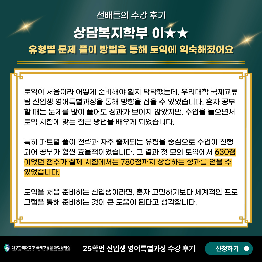 어학 실력을 올리고 싶은 후배들에게 강력 추천!