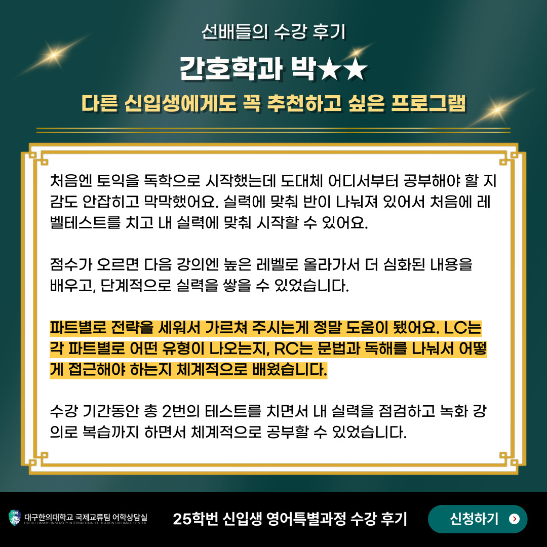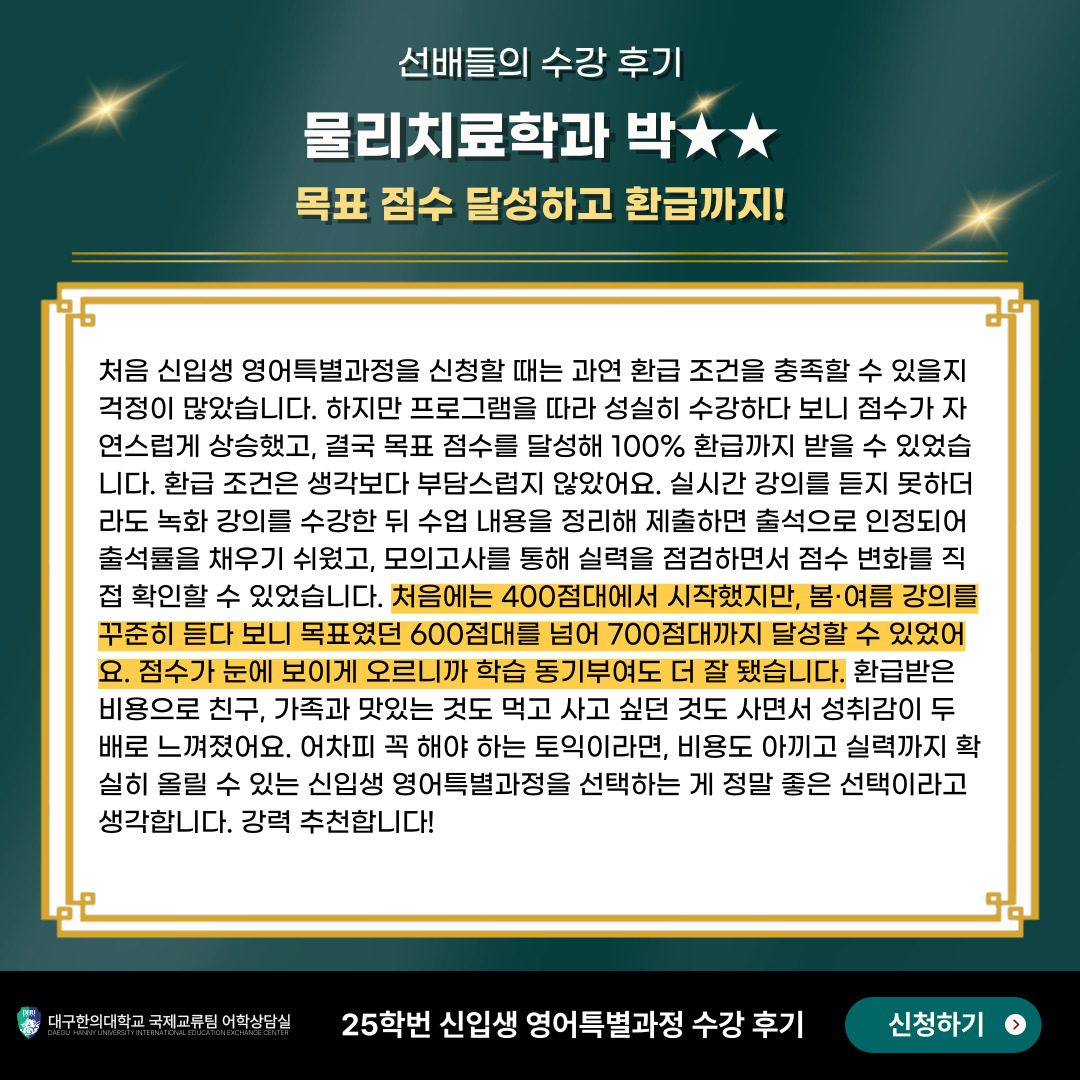 25학번 물리치료학과 박OO 수강생